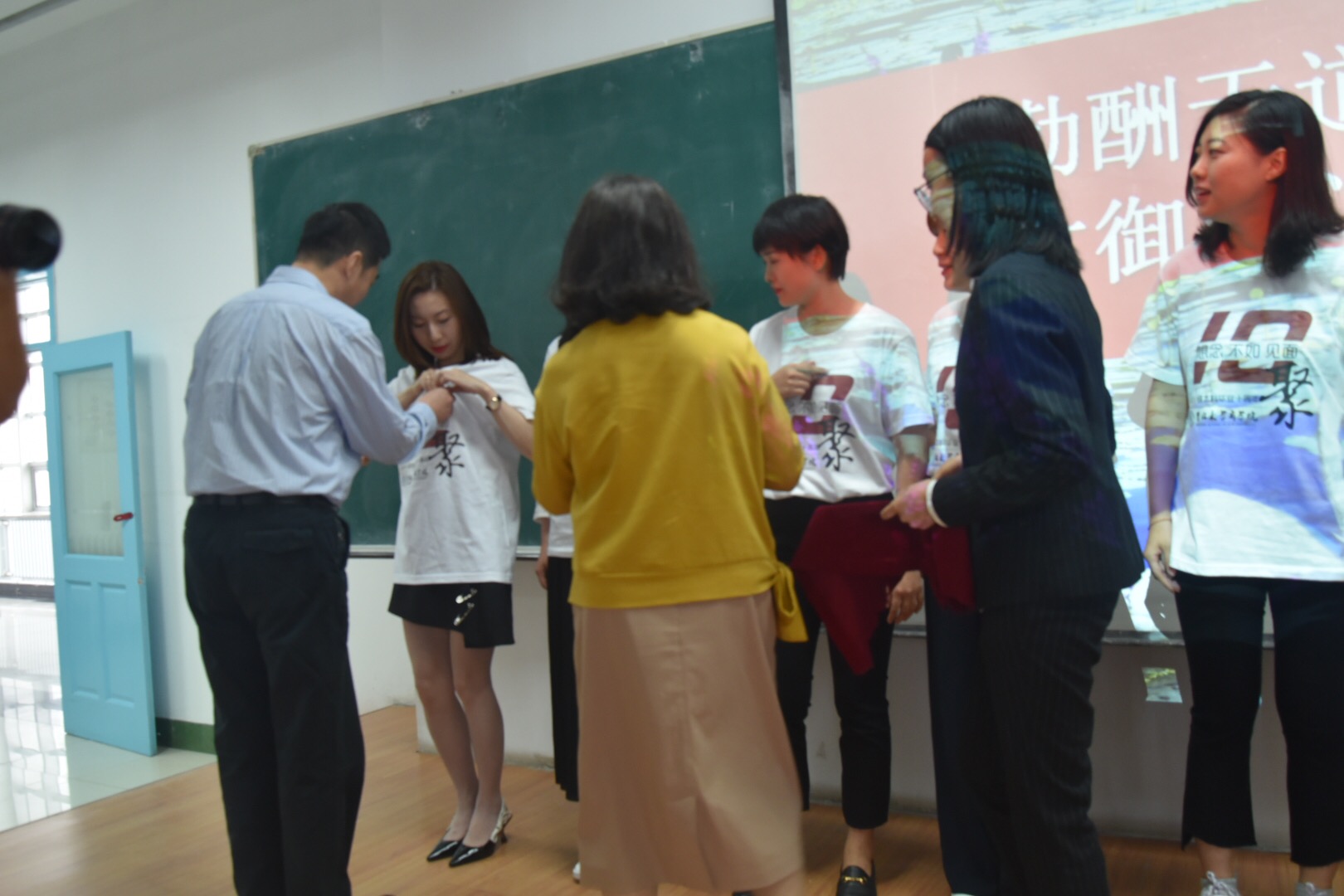 接着,到场的各位老师为校友代表佩戴院徽,张世伟院长向校友代表赠送了学院准备得纪念品。