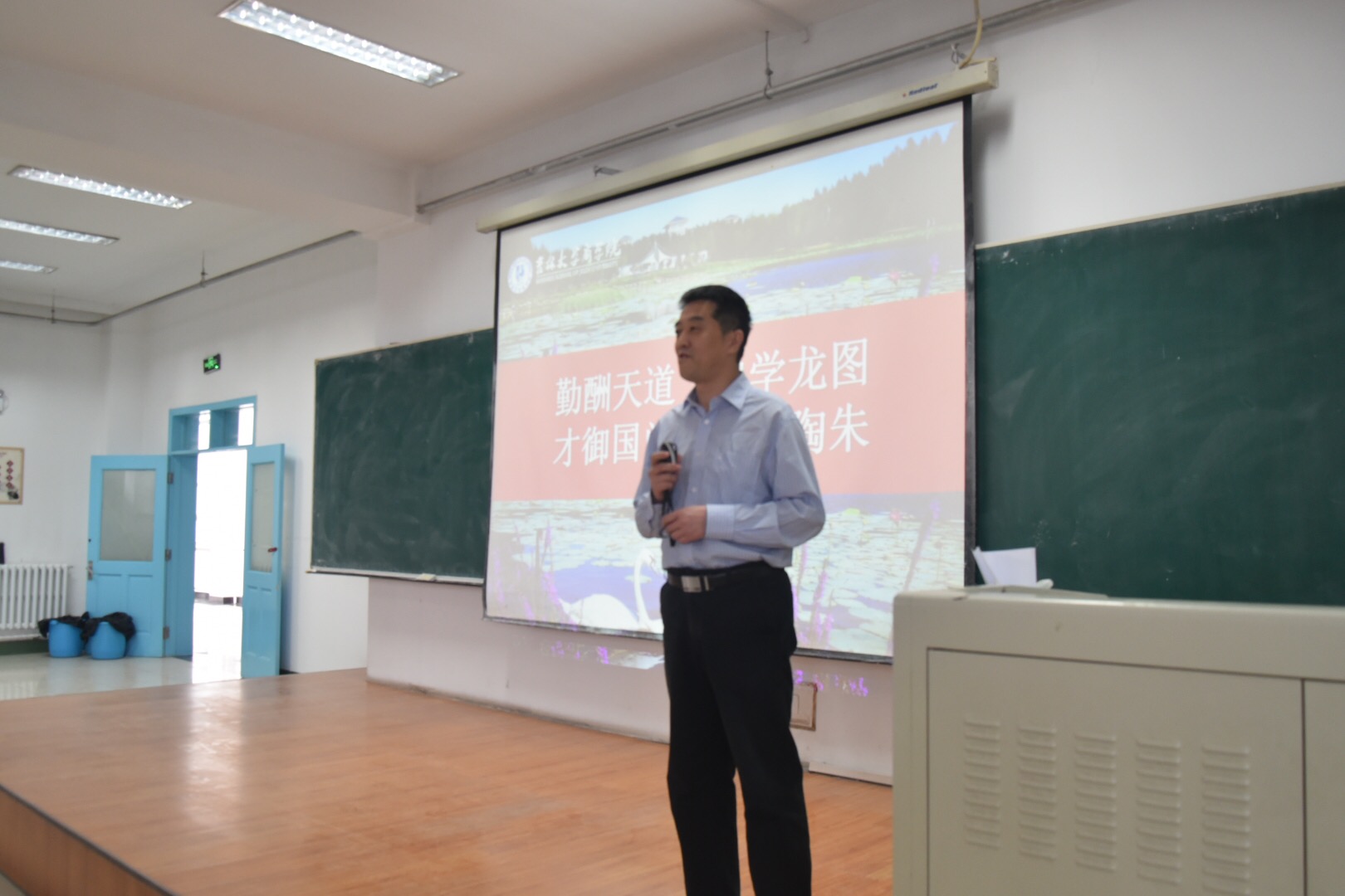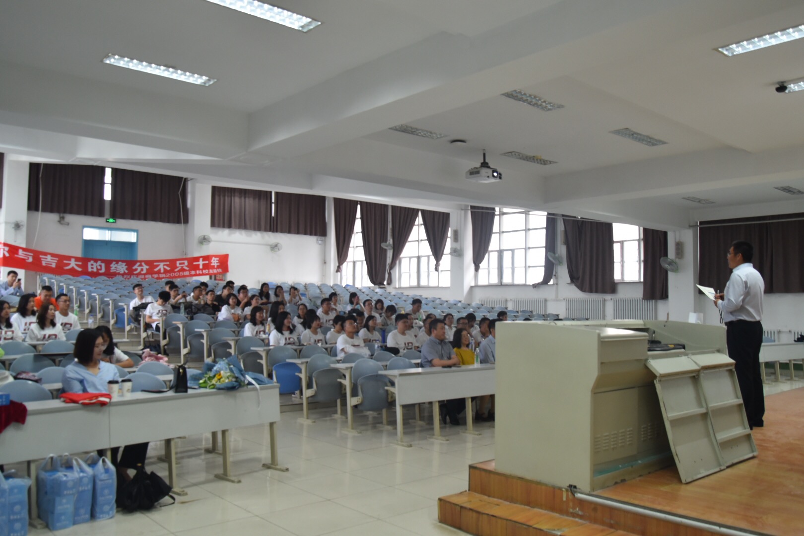 大家落座后,校友代表李刚同学发言。他深情地讲述着在吉大的四年对自己的影响。现在从事着培训工作的他,永远忘不了自己是如何在母校的培养、老师的教诲和同学的关怀下完成的蜕变。