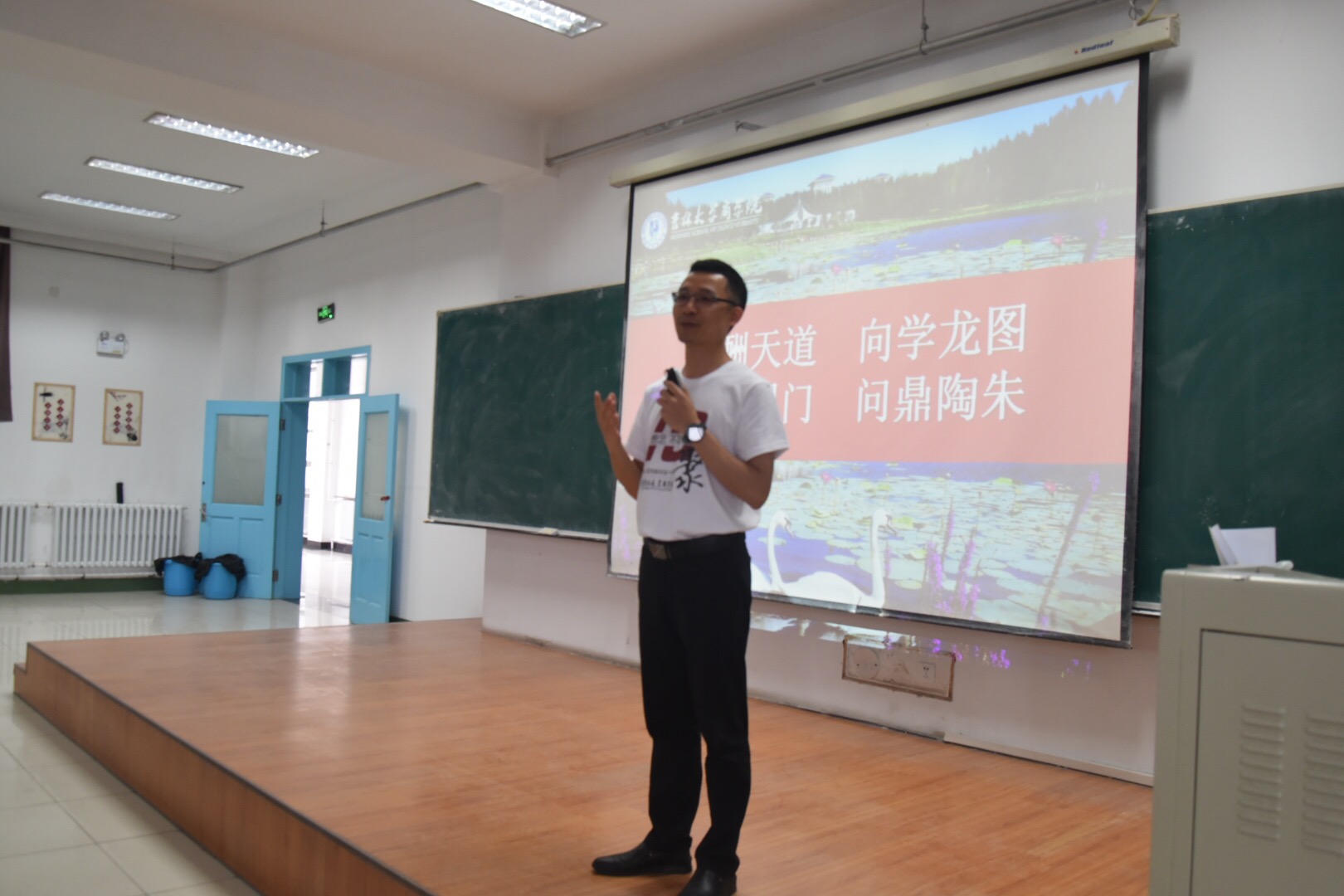 接下来是合唱校歌环节。大家吟唱着熟悉的旋律,丝毫没有陌生感。求实创新,励志图强的校训久久在耳边回响。