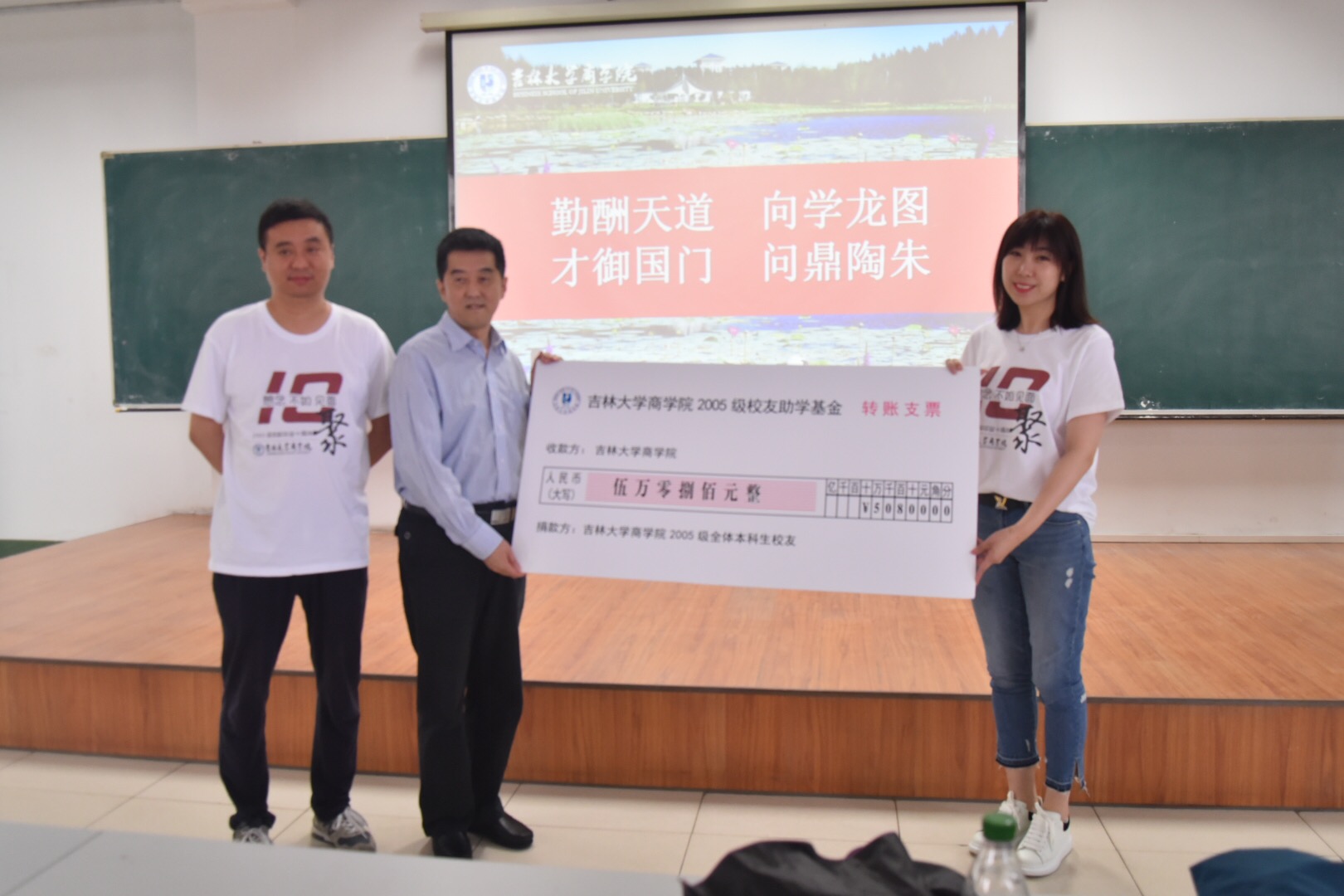 然后,在大家热烈的掌声中,完成了2005级本科校友向学院的捐赠。