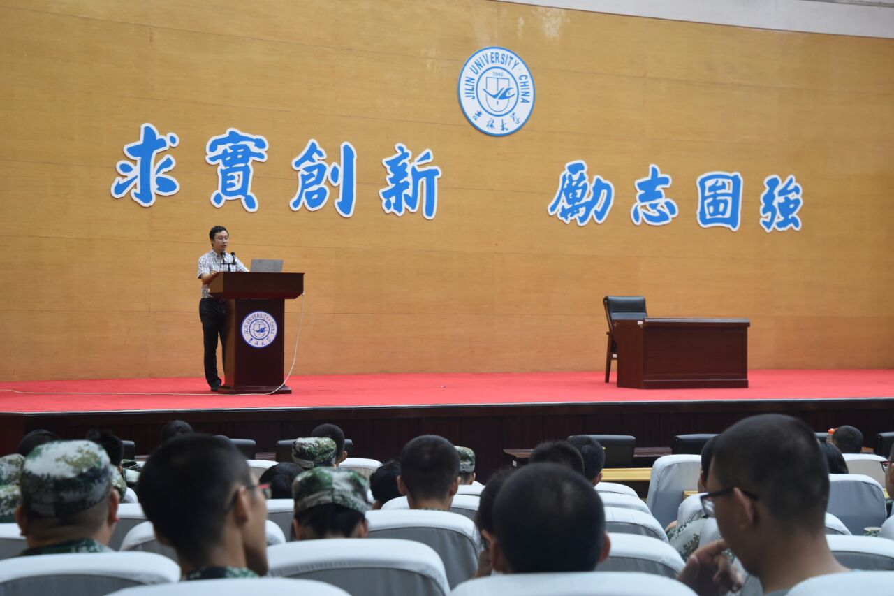 讲座一开始,荣诗达老师向同学们介绍了学生工作办公室,告诉同学们办公室的位置,让19级新生在遇到问题时可以去办公室寻求老师帮助,之后荣老师又详细讲解了学生手册上面的内容,告诫同学们一定要遵守学校的规章制度,绝不可以违规违纪。随后,李帅书记上台跟同学们再次强调了学院纪律,叮嘱同学们处理好舍友关系,要和寝室室友和谐相处、共同进步。然后荣老师建议同学们在今后的人生中写三封信,第一封是军训后给家长的一封信,谈一谈军训期间自己的的感受;第二封是大学四年毕业后,再给家人写一封信,跟家里谈一谈自己的人生规划,以及现在完成到了什么程度;第三封是十年后写给学院或者是写给19级辅导员金博老师的一封信,无论到时候同学们是一种什么样的状态,如果还记得这件事,就学校就写一封信,给金老师写一封信,写下想对学校和老师说的话。