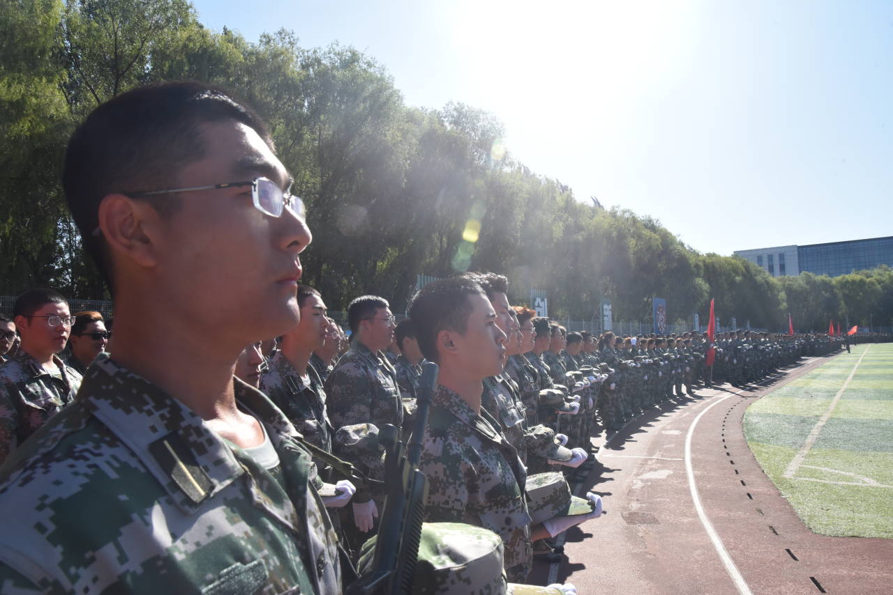 上午8点,长春的温度已经低至3度,空气中透出阵阵凉意。2019级的新生们仍毅然在冷风中站立,迎着耀眼的朝阳,迈着铿锵的步伐,在掷地有声的口号中,踏着正步向即将到来的军训胜利走去。