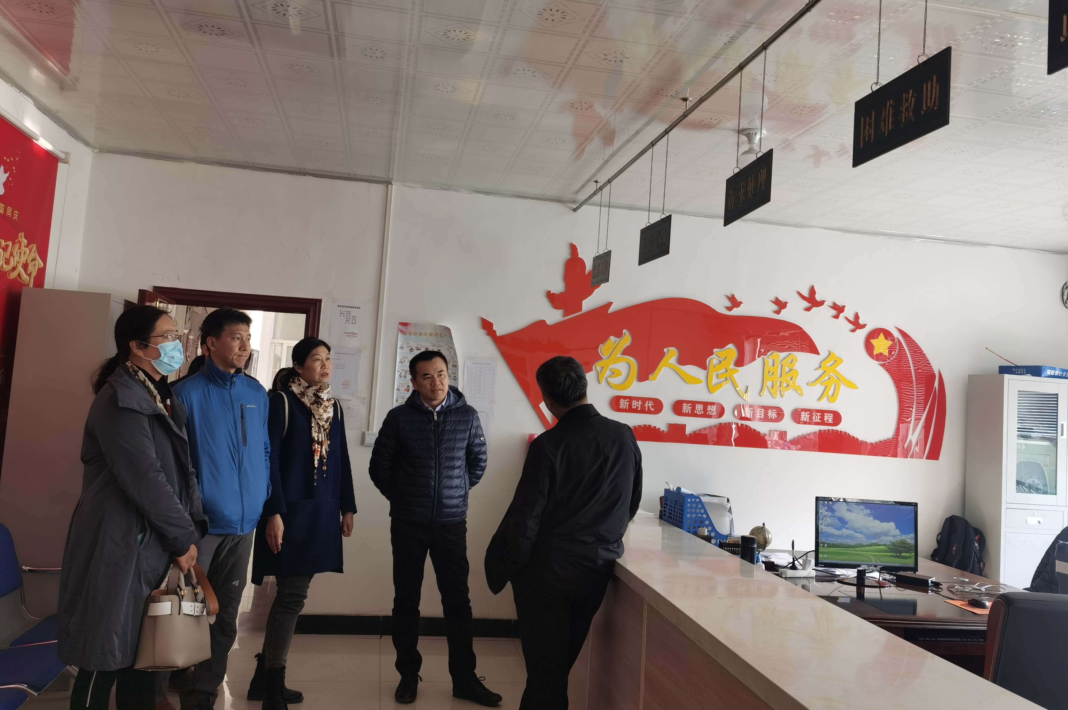 走访慰问后,大家参访了莲花泡村的村委会和办事大厅。学院应用金融系党支部丁志国教授、董竹教授、顾宁教授、张小宇教授等就村民收入、支出及乡村金融等情况进行了调研。