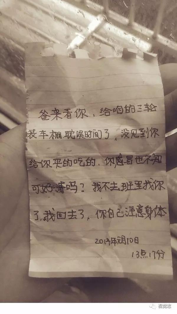 一位父亲去学校看望自己的儿子,带了一箱牛奶和一大包好吃的,还留下了一张这样的纸条……